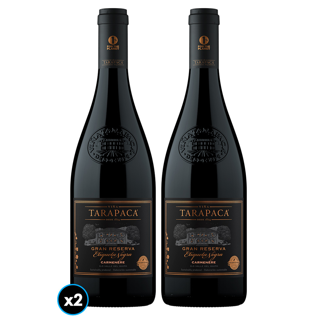 2x Vino Tarapacá Etiqueta Negra Carmenere 750cc