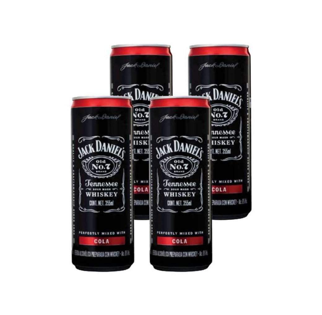 4x Jack Daniels en Lata con Bebida Cola 6º 375cc