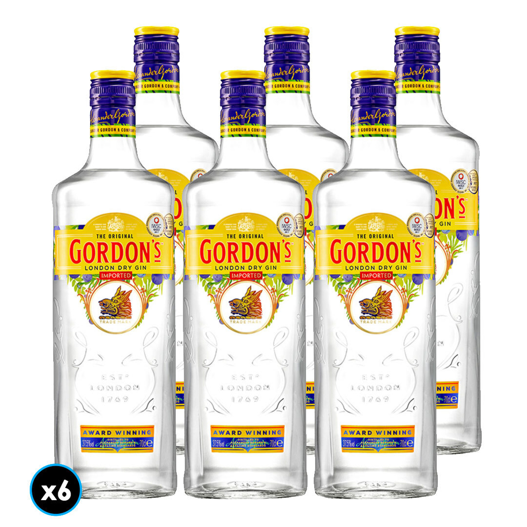 CAJA GIN GORDON'S: 6x Gin Gordons London Dry 750cc 37,5º alc.