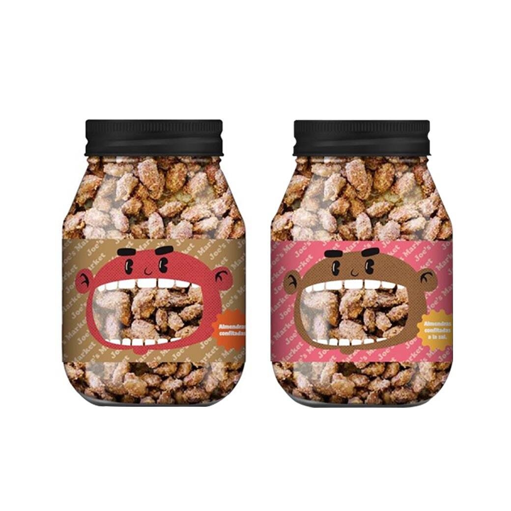 DUO ALMENDRAS JOES MARKET Nº1: 1x Almendras Joes Market Confitadas Frasco 560 grs. + 1x Almendras Joes Market Confitadas Saladas Frasco 560 grs.