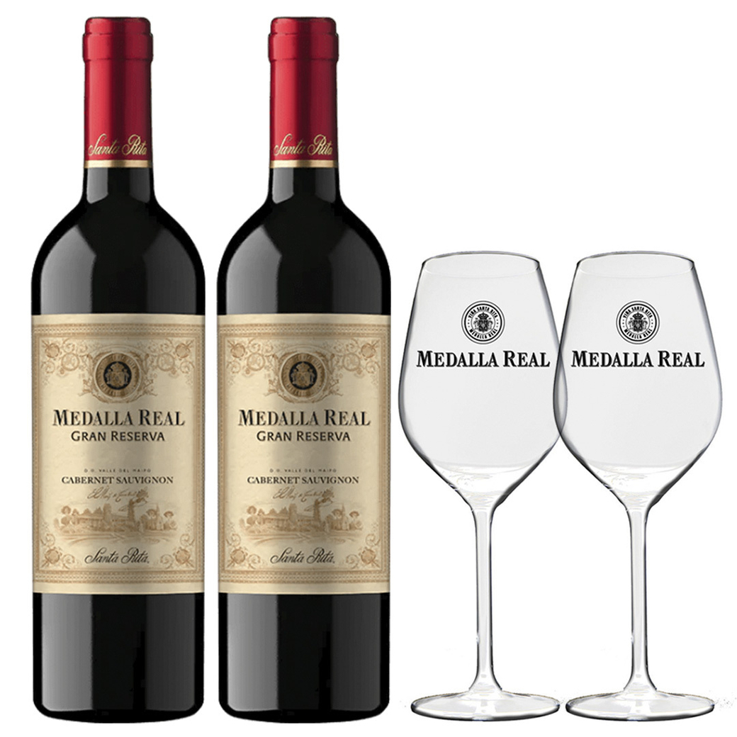 PACK MEDALLA REAL GRAN RESERVA + COPAS N°2: 2x Cabernet Sauvignon + 2 Copas Medalla Real