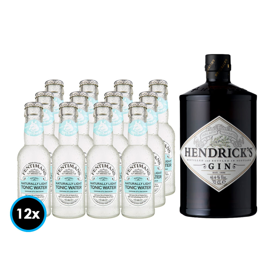 🍸 Disfruta de la combinación perfecta con el Pack Hendricks Fentimans (Light Tonic Water). Este pack incluye 12 botellas de la bebida premium Fentimans Light Tonic Water de 200cc y una botella de Gin Hendricks de 700cc con un contenido alcohólico del 41,4%.