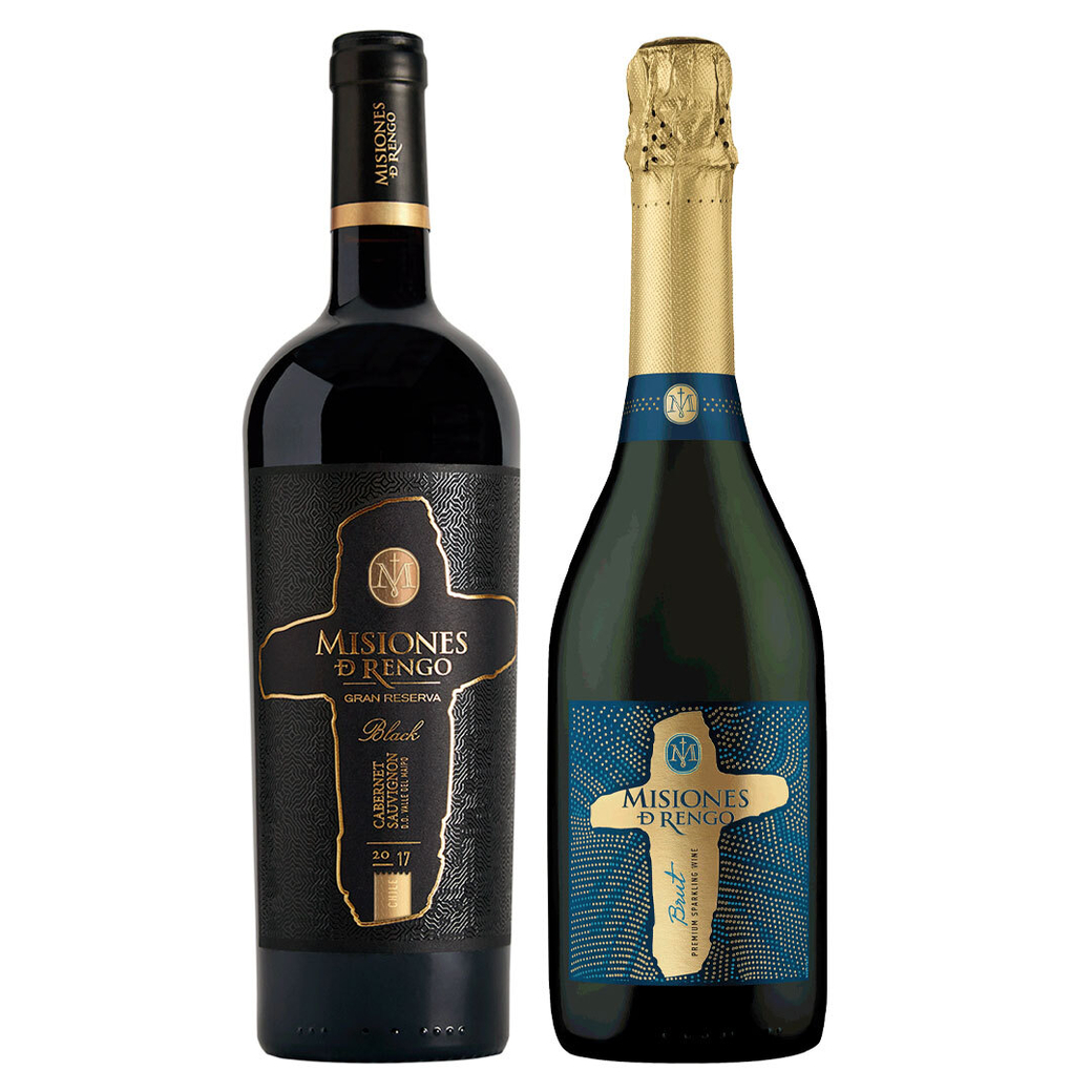 🍷🍾 ¡Disfruta de una experiencia única con el PACK MISIONES! Este pack incluye un Vino Misiones de Rengo Gran Reserva Black Carmenere 750cc, elaborado con uvas cuidadosamente seleccionadas y envejecido en barricas de roble francés para brindar un sabor intenso y elegante. Además, podrás deleitarte con el Espumante Misiones de Rengo Brut 750cc, un espumoso fresco y equilibrado que te sorprenderá con sus notas frutales y florales.