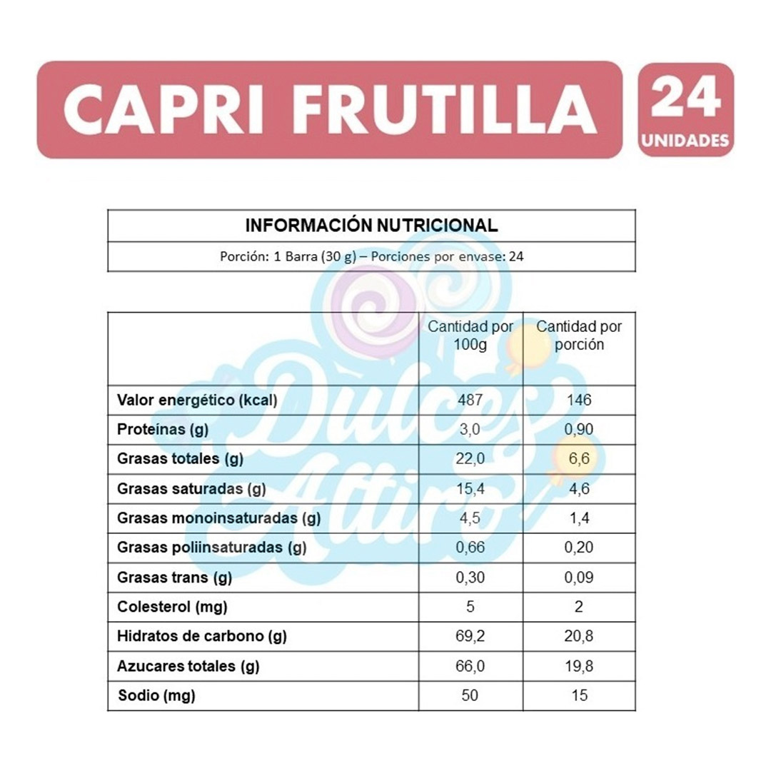 🍫 Descubre la deliciosa experiencia de los Chocolates Capri Relleno Frutilla en su presentación de 30 gramos. Este pack de 24 unidades es perfecto para los amantes del chocolate que buscan un toque frutal en cada bocado. Cada pieza está cuidadosamente elaborada con el mejor cacao y un relleno cremoso de frutilla que te sorprenderá.