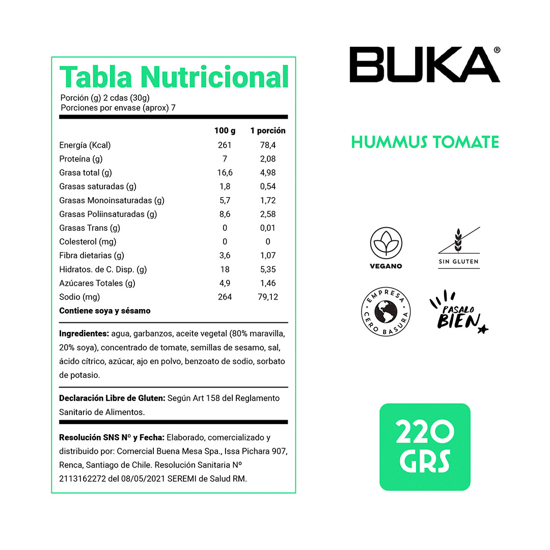 Buka Hummus Tomate 220 grs.