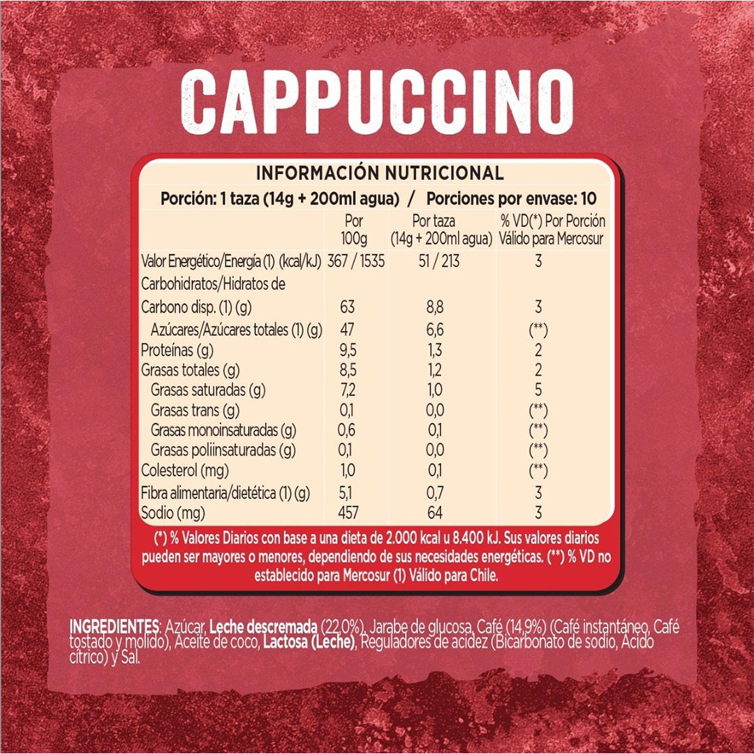- 🍫 Sabor auténtico a capuccino con una textura cremosa y suave.