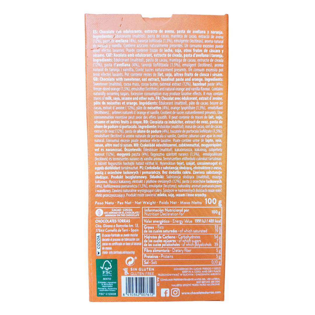 🍫 Chocolate Torras Vegano Leche de Avena y Naranja 100 grs 🌱