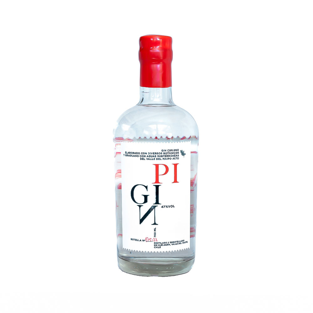 Información:Pigin es un gin nacional y artesanal. Contiene seis botánicos seleccionados y es graduado con aguas subterráneas de la cordillera Del Valle del Maipo.