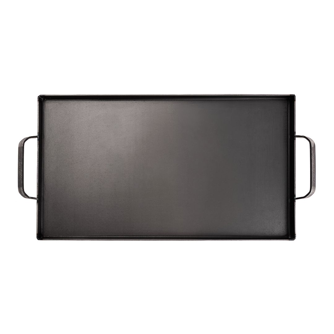 Construida en hierro laminado en caliente, entrega una excelente retención y transmisión del calor para preparaciones precisas y sabrosas. Su superficie aprovecha dos quemadores y ofrece espacio suficiente para cocinar varios ingredientes al mismo tiempo sin perder control.
