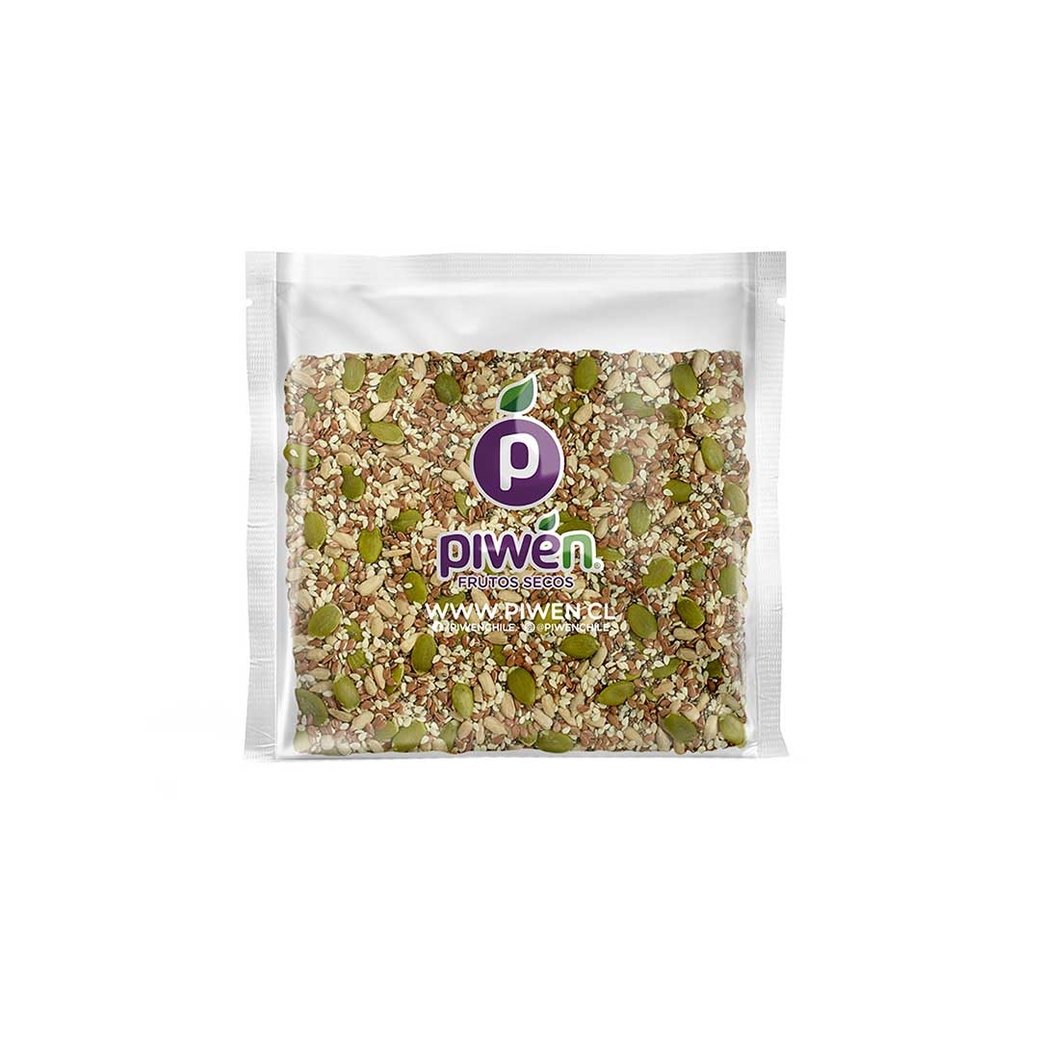 Mix de semillas de zapallo, maravilla, chía, linaza y sésamo ¡Juntamos todos los beneficios de nuestras semillas en un solo envase! Dale a tus preparaciones un nuevo sabor con este Mix que viene listo para ser mezclado con tus cereales, yogurt, ensaladas, preparar tu propio pan o galletas multisemillas.