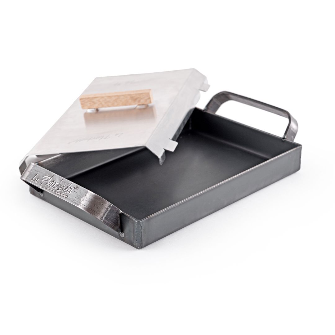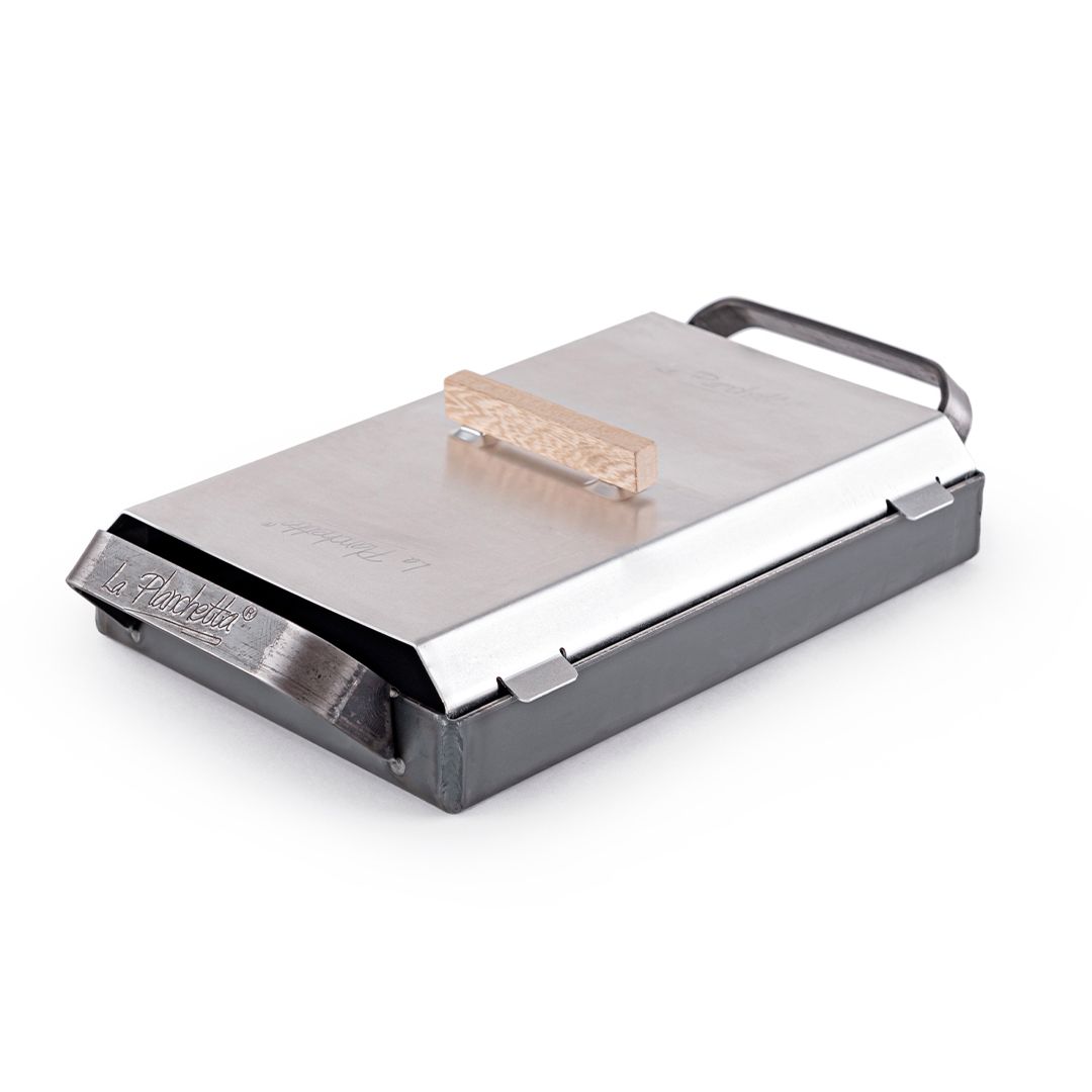 Plancha de hierro pequeña con tapa La Planchetta: la aliada compacta y potente que lleva tus preparaciones a un nivel profesional, sin complicaciones y con resultados constantes. Perfecta para el día a día, desde desayunos rápidos hasta sellados intensos y cocciones jugosas.