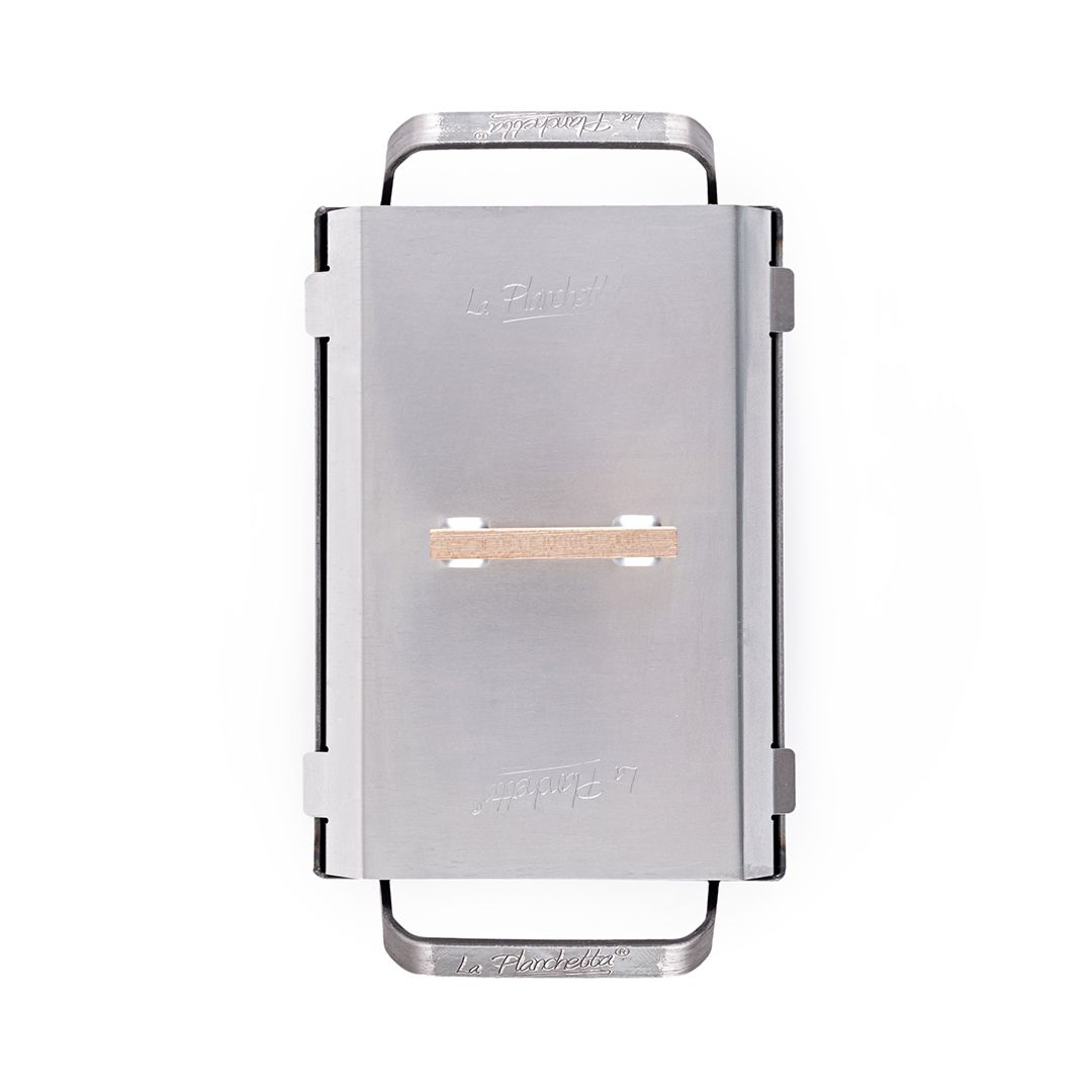 Medidas: 24 x 16 x 3 cm de alto. Materiales: hierro laminado en caliente, aluminio y madera. Cuidado y limpieza: después de usar, lava con agua caliente y detergente con esponja plástica o metálica; seca bien antes de guardar.