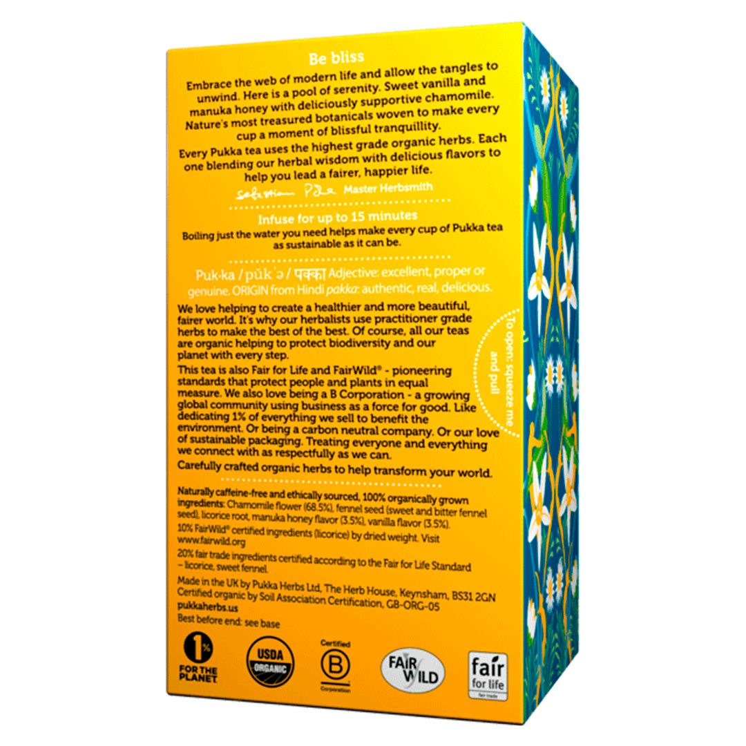 Siente despertar la magia de los mejores dones de la naturaleza en esta infusión orgánica relajante. 🌿 El Té Pukka Chamomile, Vanilla & Manuka Honey combina la manzanilla resplandeciente con toques de miel de manuka y vainilla, creando la mejor mezcla para combatir el estrés y la ansiedad. 🌼🍯