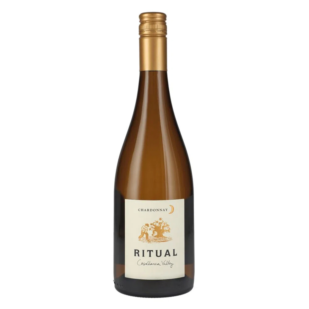 🍷 Disfruta del exquisito Vino Ritual Chardonnay 750cc, elaborado en el Valle de Casablanca, Chile. Este vino blanco es reconocido por su aroma a frutas tropicales y notas de vainilla y mantequilla, resultado de su fermentación en barricas de roble francés.